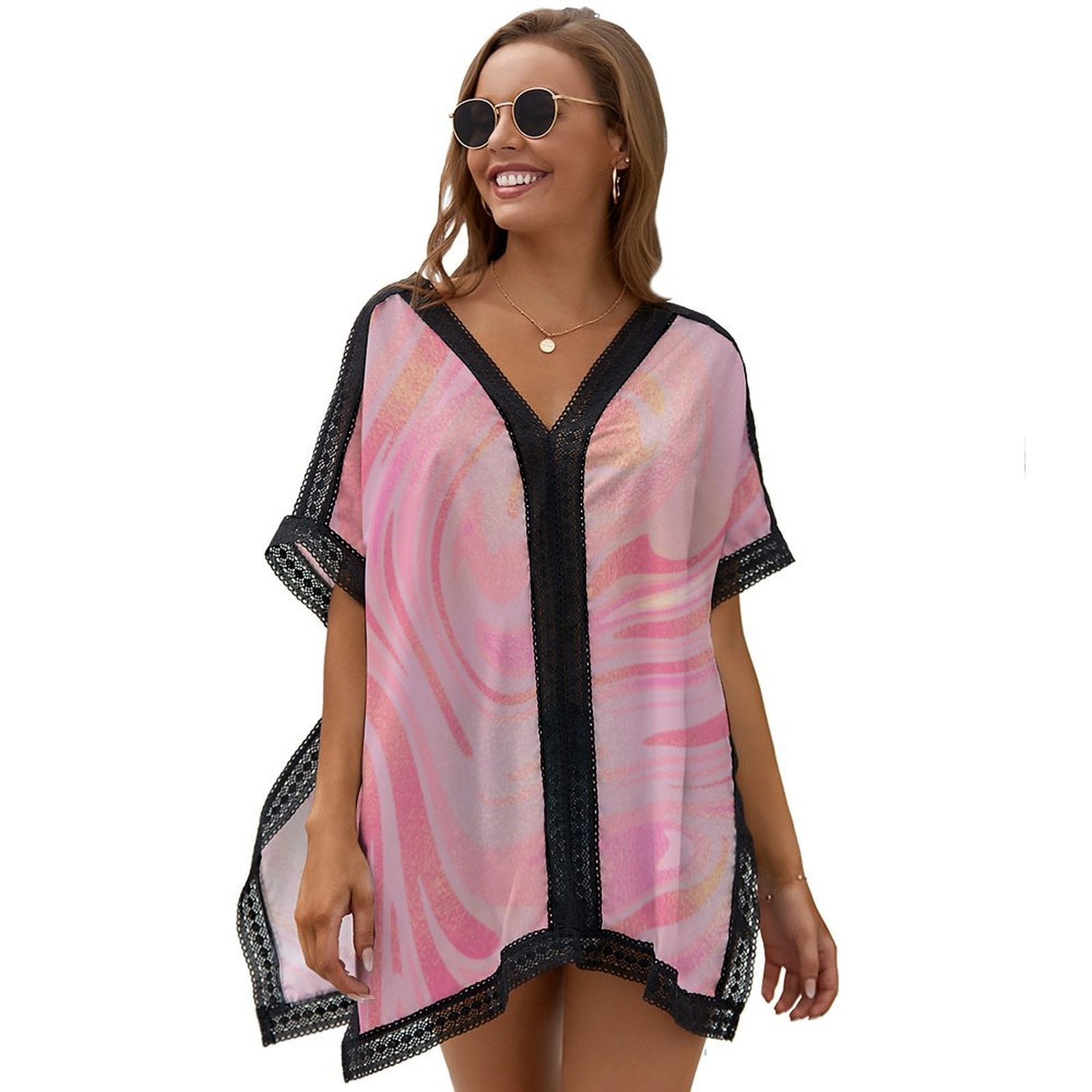 Tag : Gold Pink Marble Swirl Gold Glitter Womens Beach Cover Up Oversized Lace Bikini Swimsuit