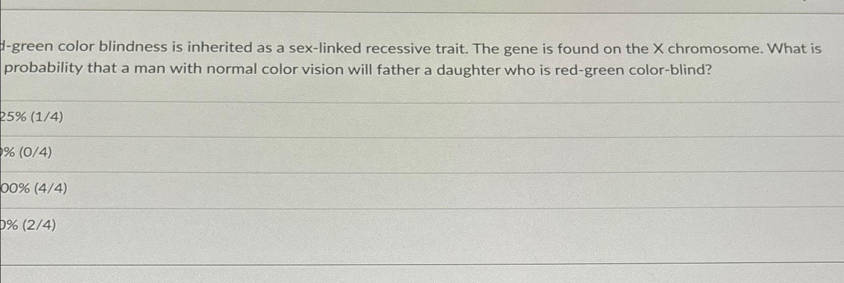 Tag : Green Color Blindness Is Inherited As A Sex Linked Chegg