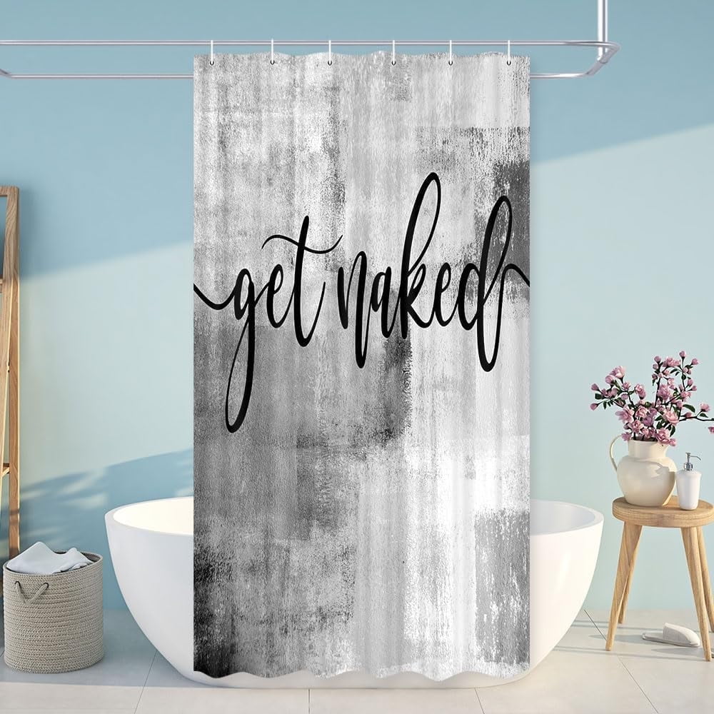 Grey Ombre Fabric Shower Curtain Funny Black Art Get Naked On Abstract Paint Brush Graffiti 201292
