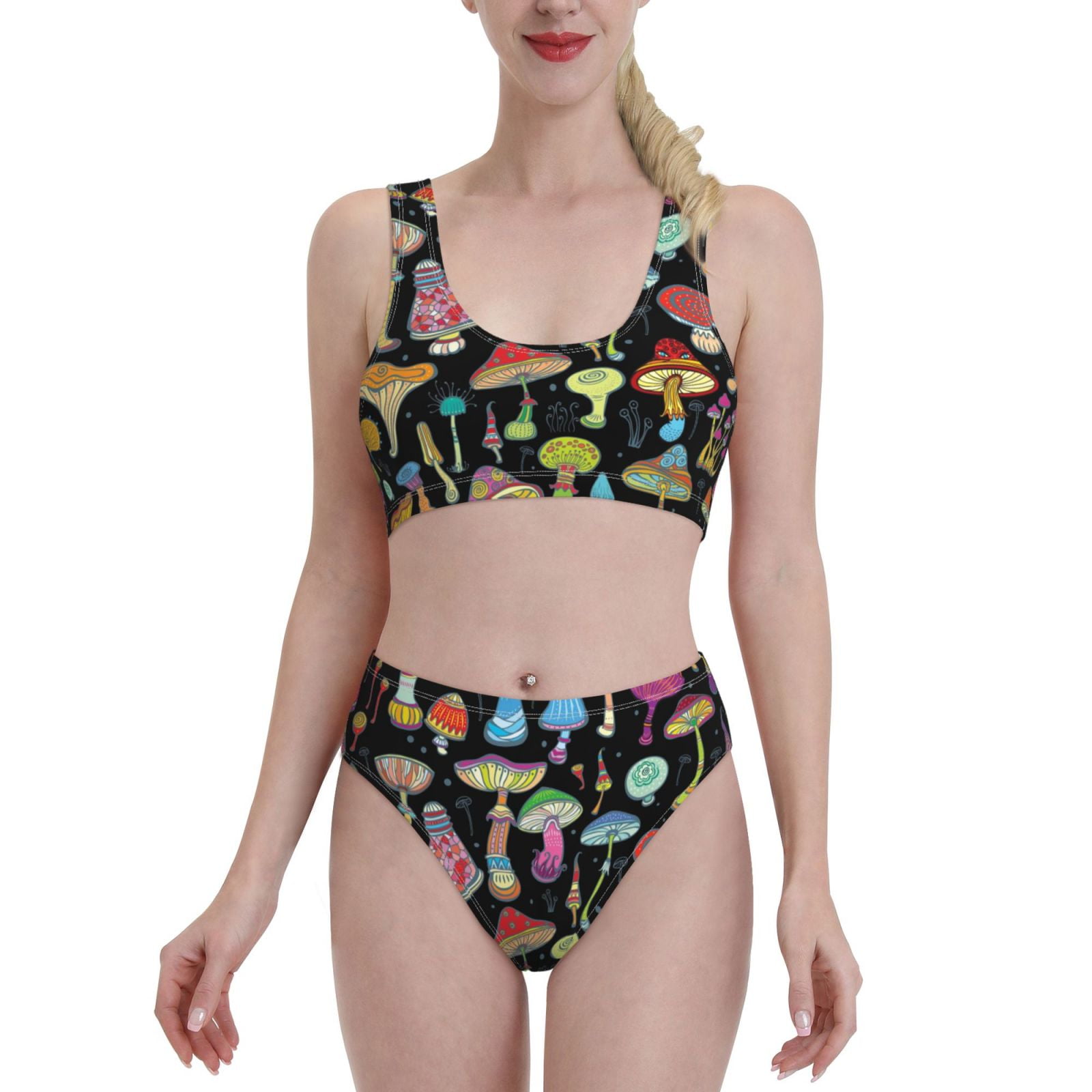 Haiem Bright Mushrooms Women S Bikini Set Two Piece High Waisted Bathing Suit With Square Neck 118064