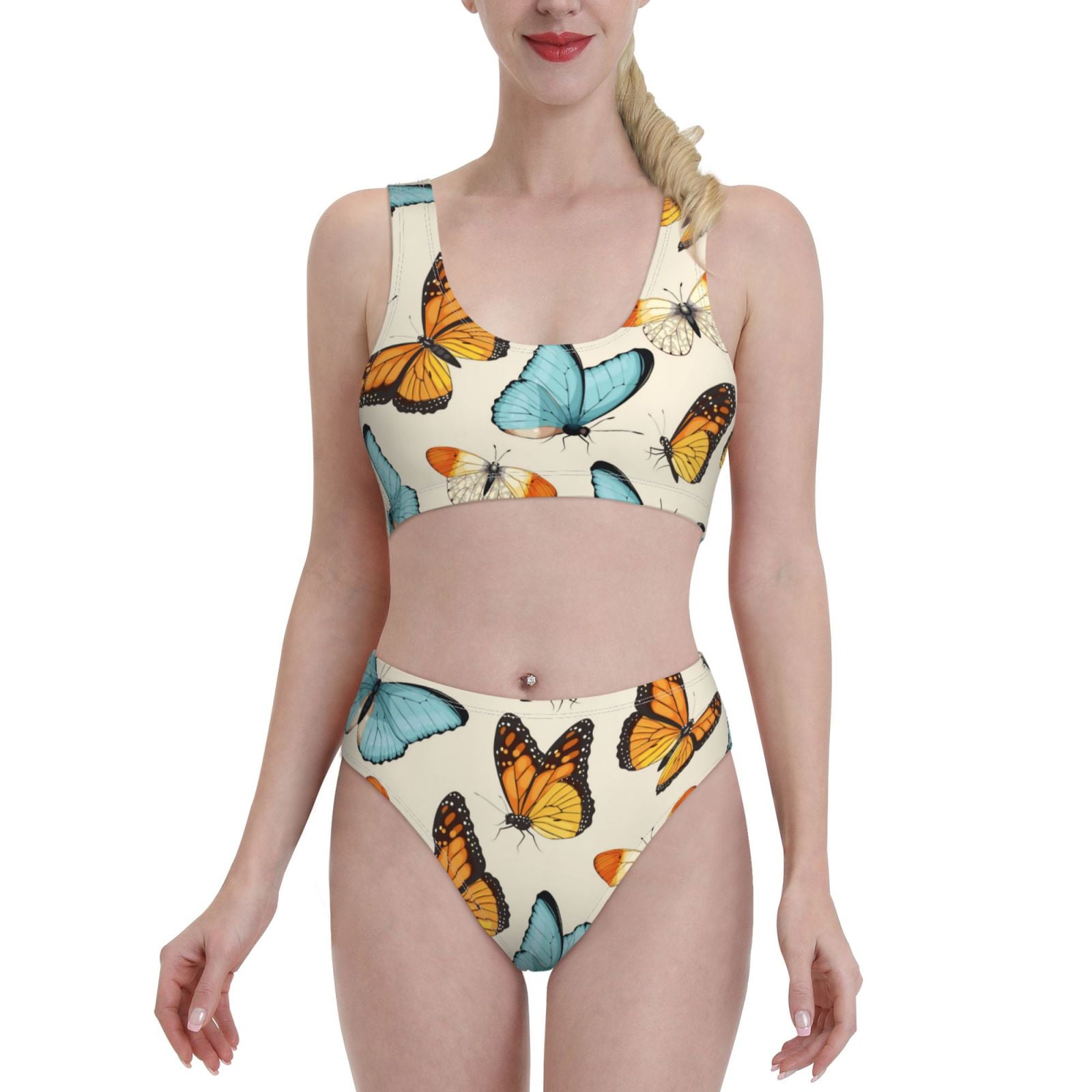 Tag : Haiem Butterflies Women S Bikini Set Two Piece High Waisted Bathing Suit With Square Neck And