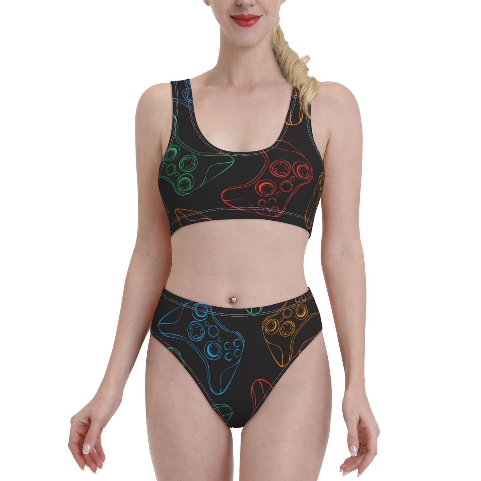 Haiem Gamepad Joystick Game Women S Bikini Set Two Piece High Waisted Bathing Suit With Square is a popular picture for sexy and hot.