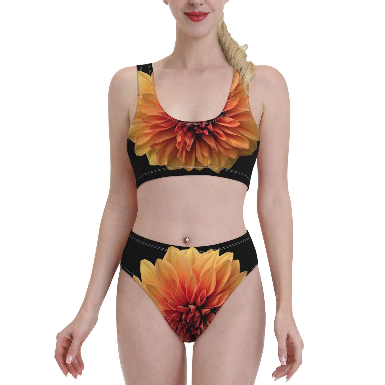 Tag : Haiem Orange Dalia Women S Bikini Set Two Piece High Waisted Bathing Suit With Square Neck And