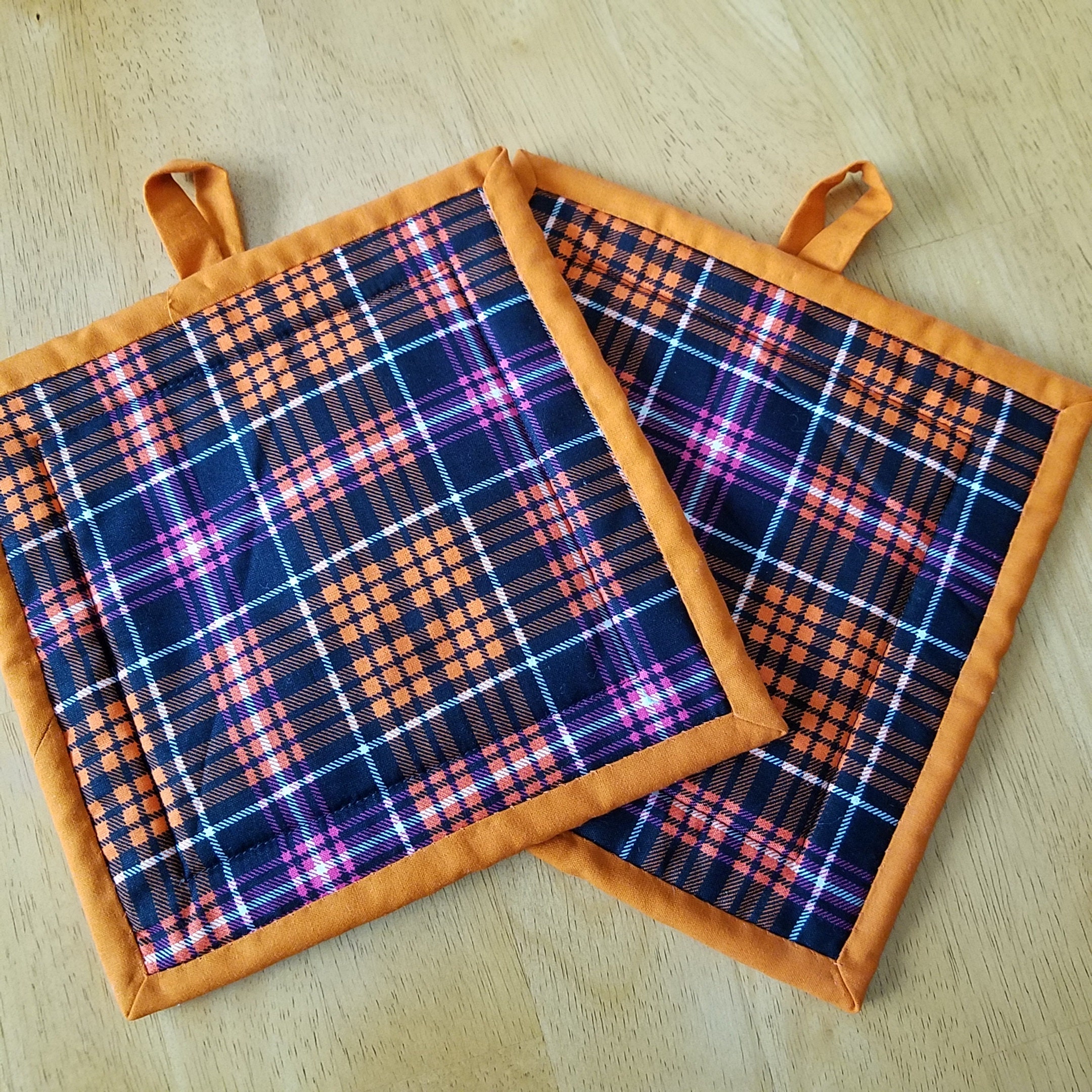 Related pictures for Halloween Pot Holders Set Of Hanging Potholders Quilted Insulated Hot Pads Purple Orange