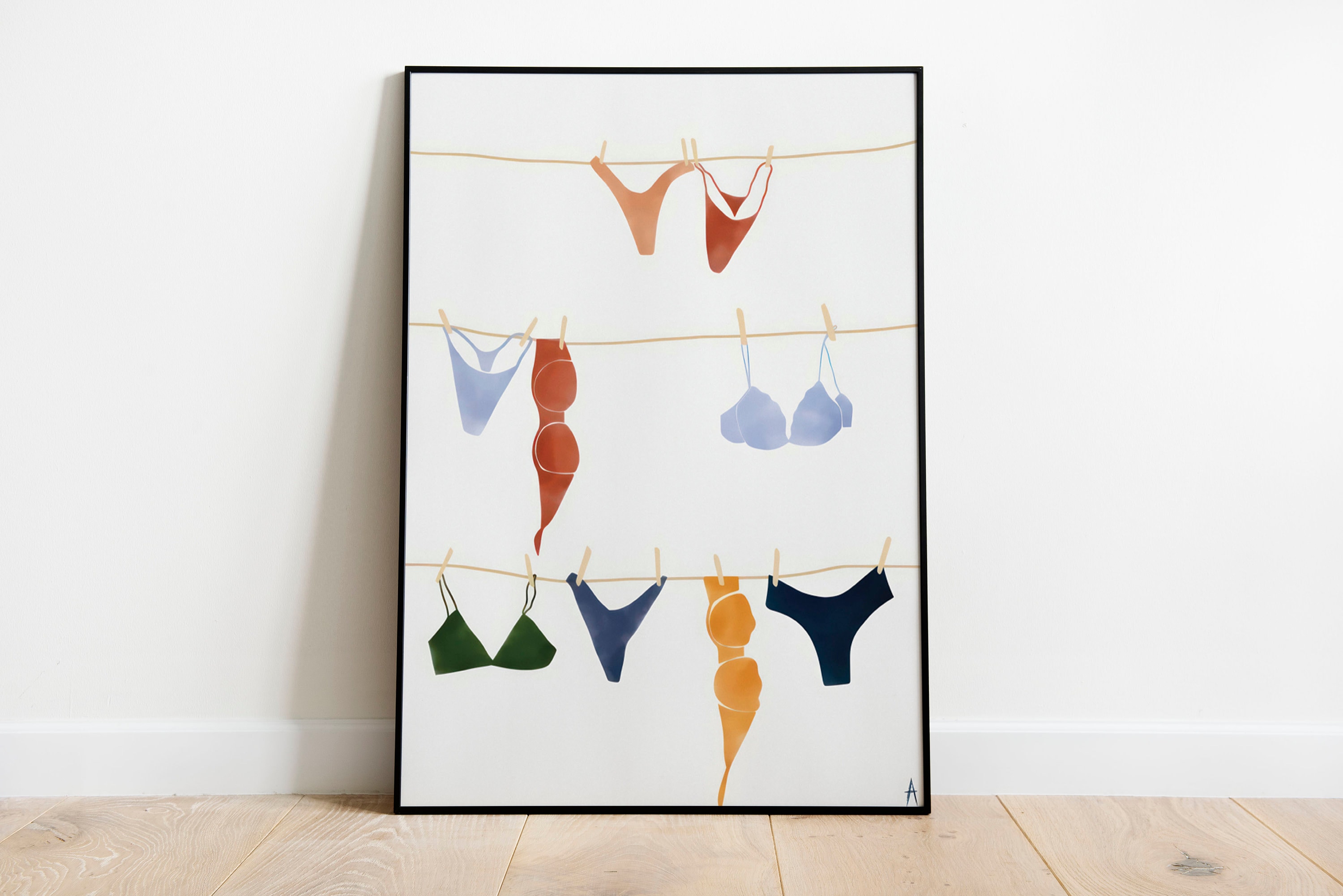 Tag : Hanging Bikini Poster Bikini On Clothesline Print Feminist Wall Art Bra Bikini Illustration