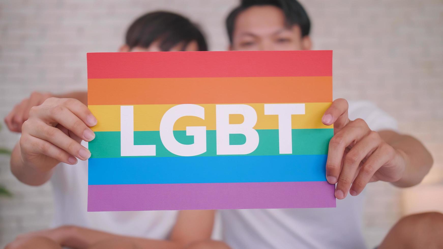 Happy Gay Asian Couple Showing Their Love With Rainbow Flag Stock Photo At Vecteezy