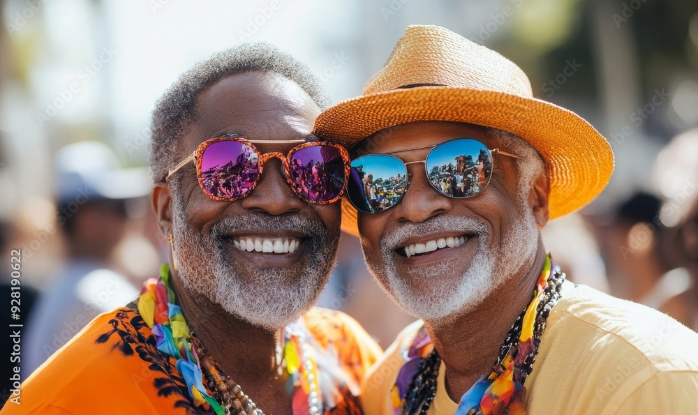 Happy Senior Black Gay Couple Smiling At Pride Parade Elderly African American Male Friends is a popular picture for sexy and hot.