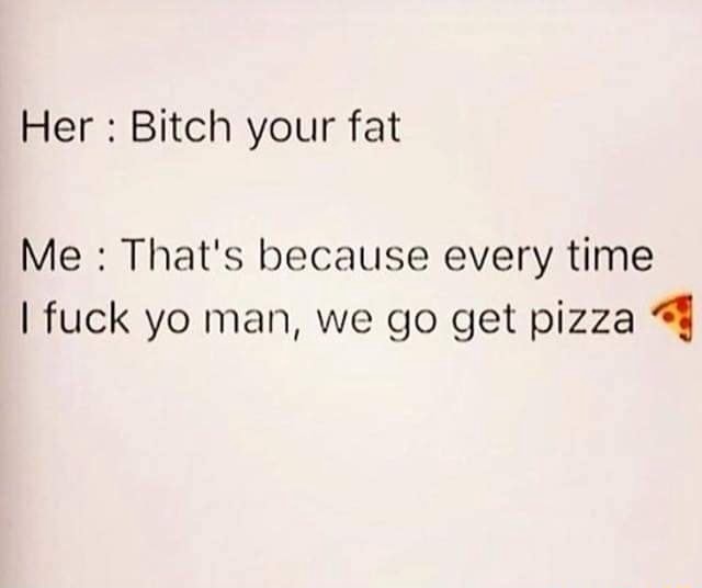 Tag : Her Bitch Your Fat Me That S Because Every Time Fuck Yo Man We Go Get Pizza Ifunny