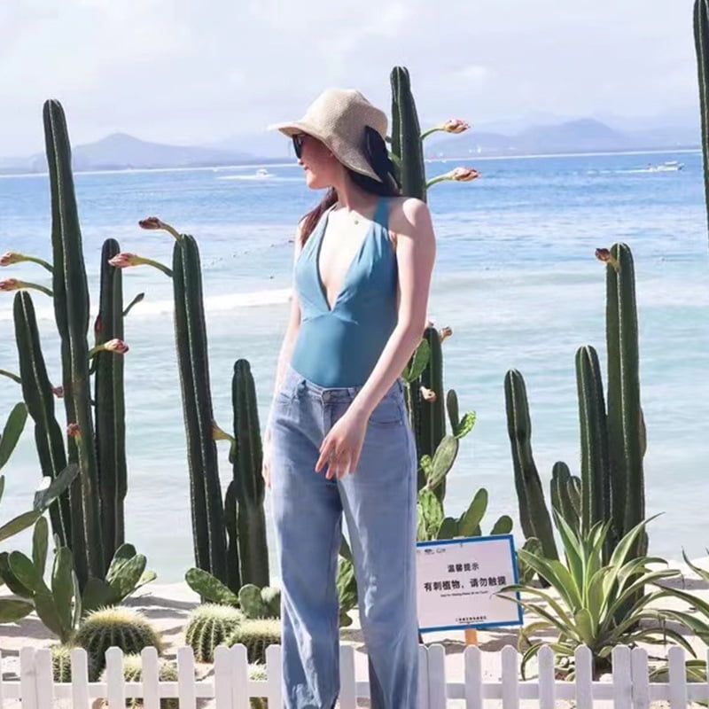 Tag : Hhh Ins Retro Style Sexy Deep V One Piece Swimsuit Female Hot Girl Out Of The Street New