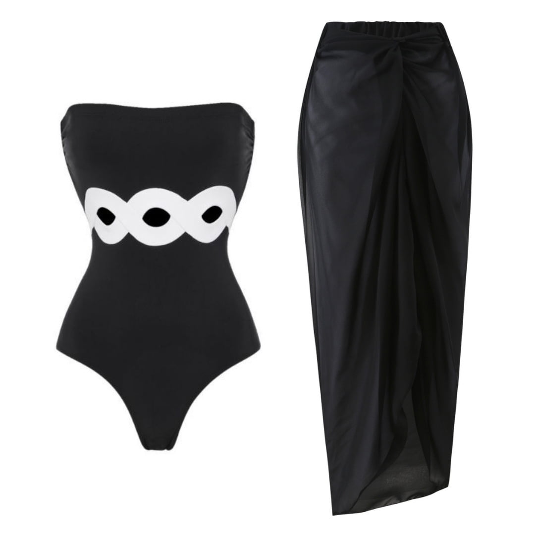 Hhh Swimwear New Simple Black And White Contrast Color One Piece Swimsuit Female Hot 105504