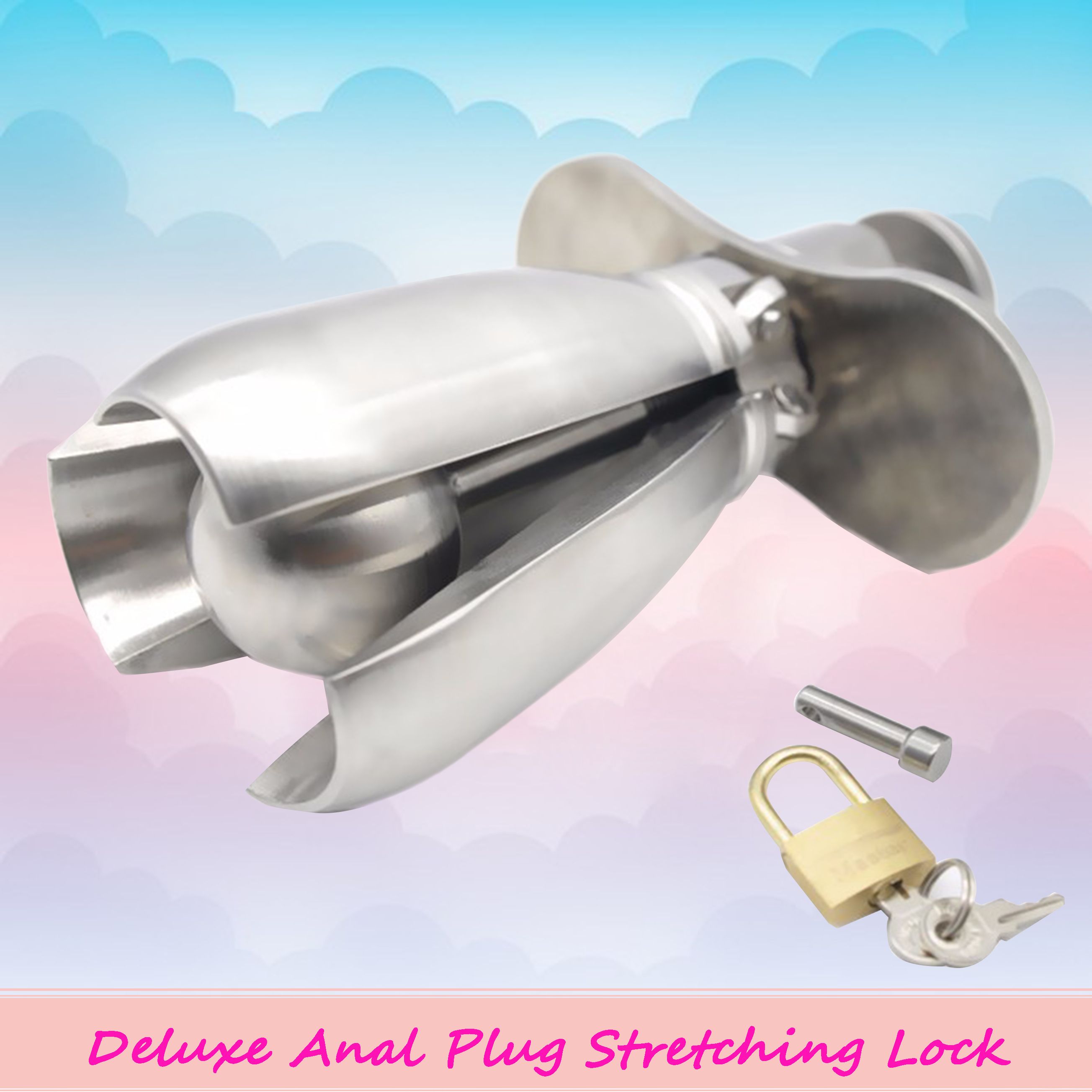 High Quatity The Stainless Steel Deluxe Anal Plug Stretching Lock Chastity Device Gay Fetish is a popular picture for sexy and hot.