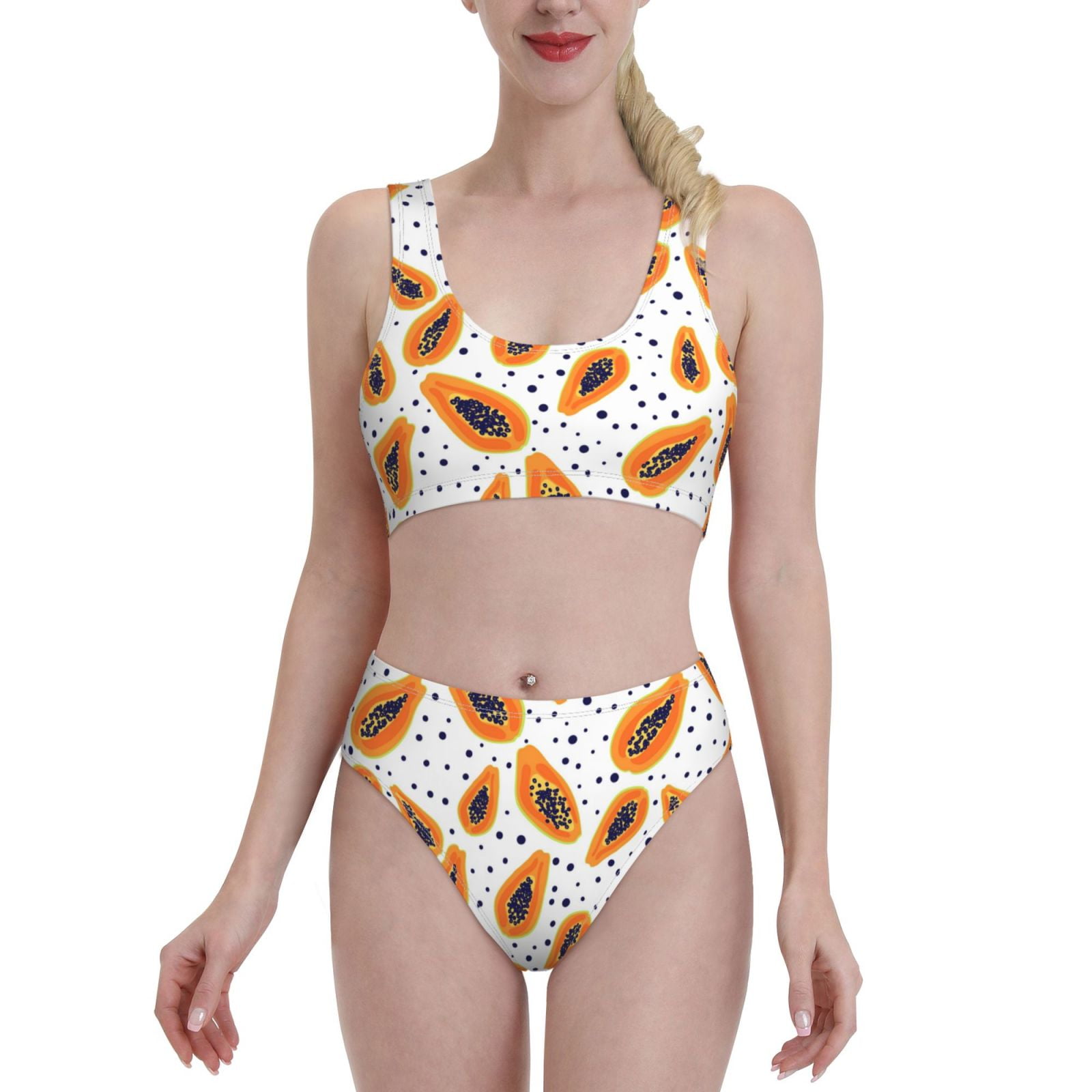 High Waisted Bikini Sets For Women Papaya Polka Dots Piece Sporty Bathing Suit Swim Suits is a popular picture for sexy and hot.