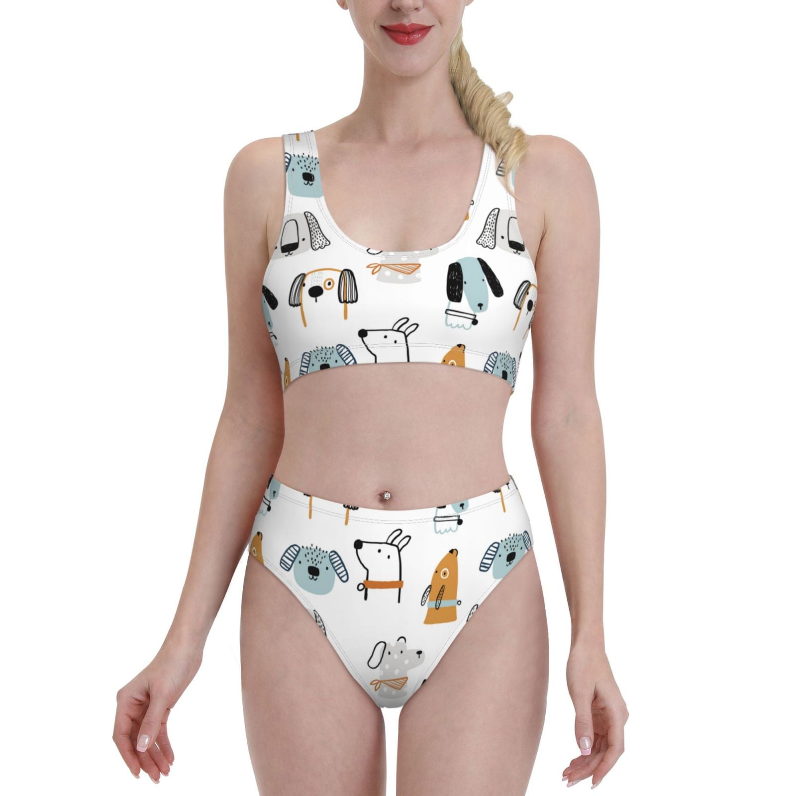 High Waisted Bikini Sets For Women Puppy Print B Piece Sporty Bathing Suit Swim Suits For is a popular picture for sexy and hot.