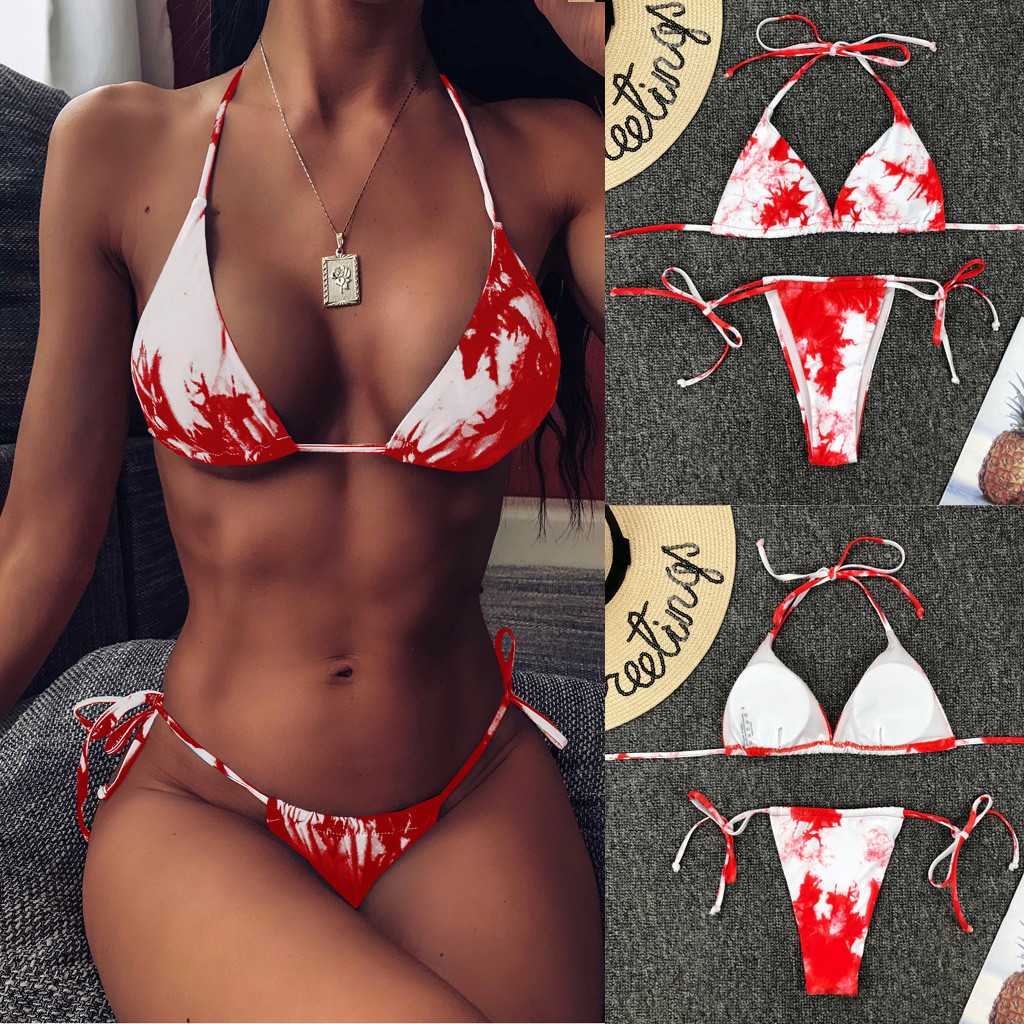 Tag : Himiway Women S Sexy Tie Dye High Cut Leg Halter Bikini Set Two Piece Swimsuit Red S Walmart