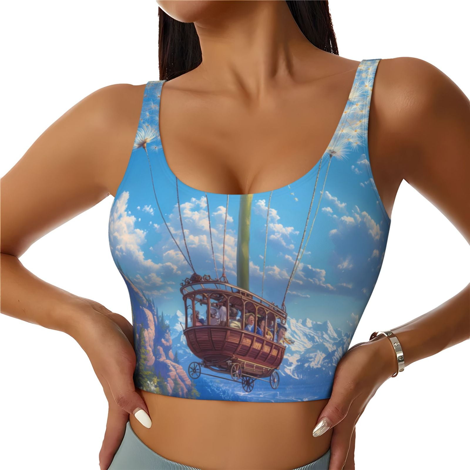Hirioo Dandelion Hot Air Balloon For Women S Sports Vest With Full Print Design Stretchy Fabric