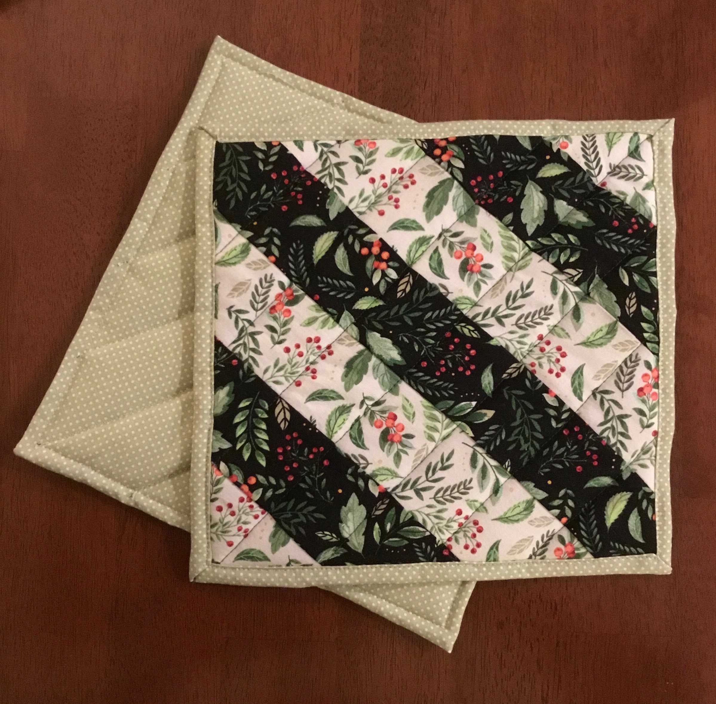 Holiday Table Top Hot Pads Set Of Two Quilted Pot Holders Trivets Heat Resistant Hostess Gift is a popular picture for sexy and hot.