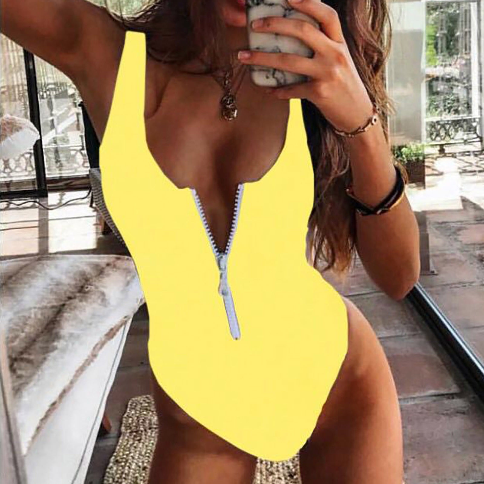 Tag : Hombom One Piece Swimsuit Women Modest Bikini Yellow Solid Color One Pieces Swimsuits For Curvy