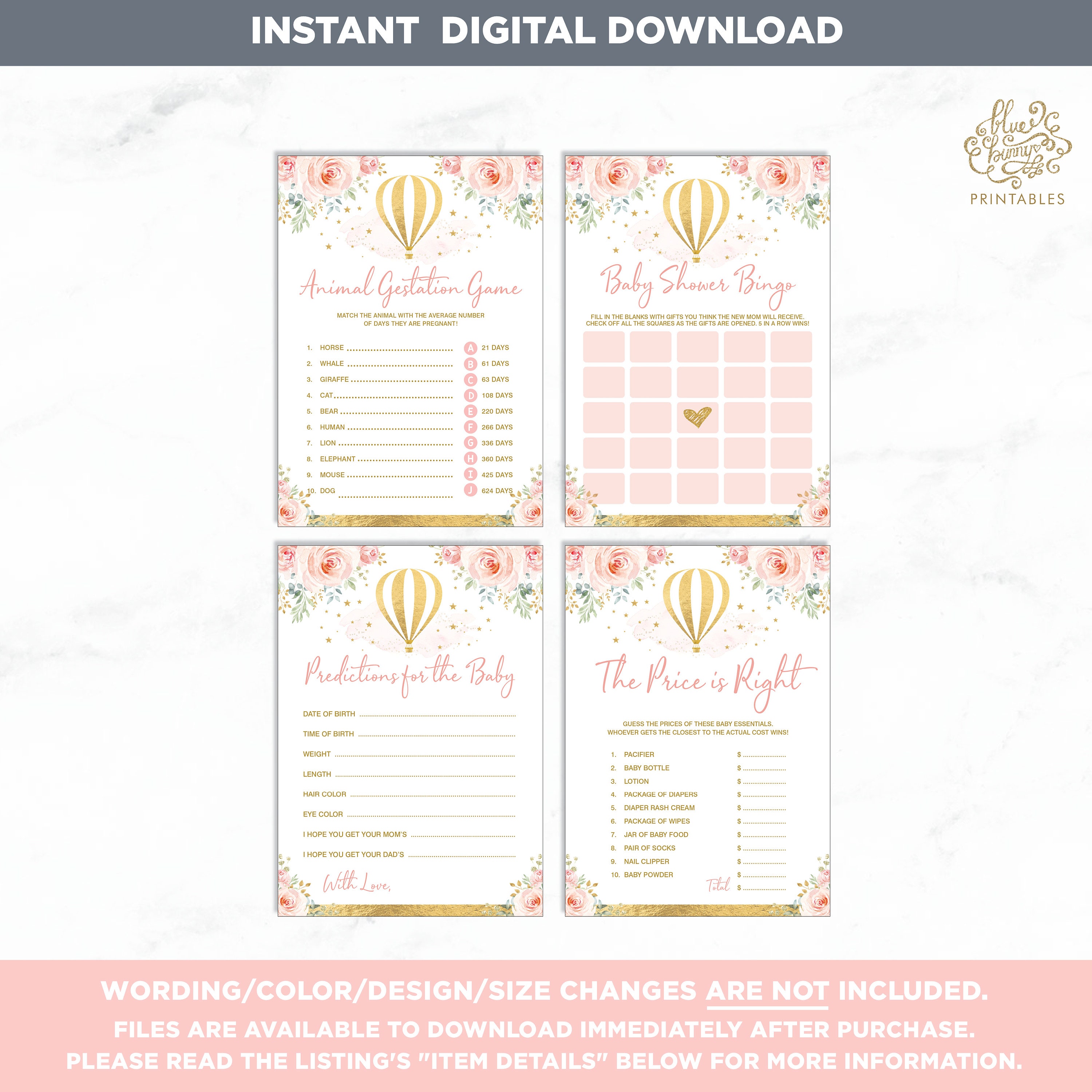 Tag : Hot Air Balloon Baby Shower Games Package X Pink And Gold Etsy