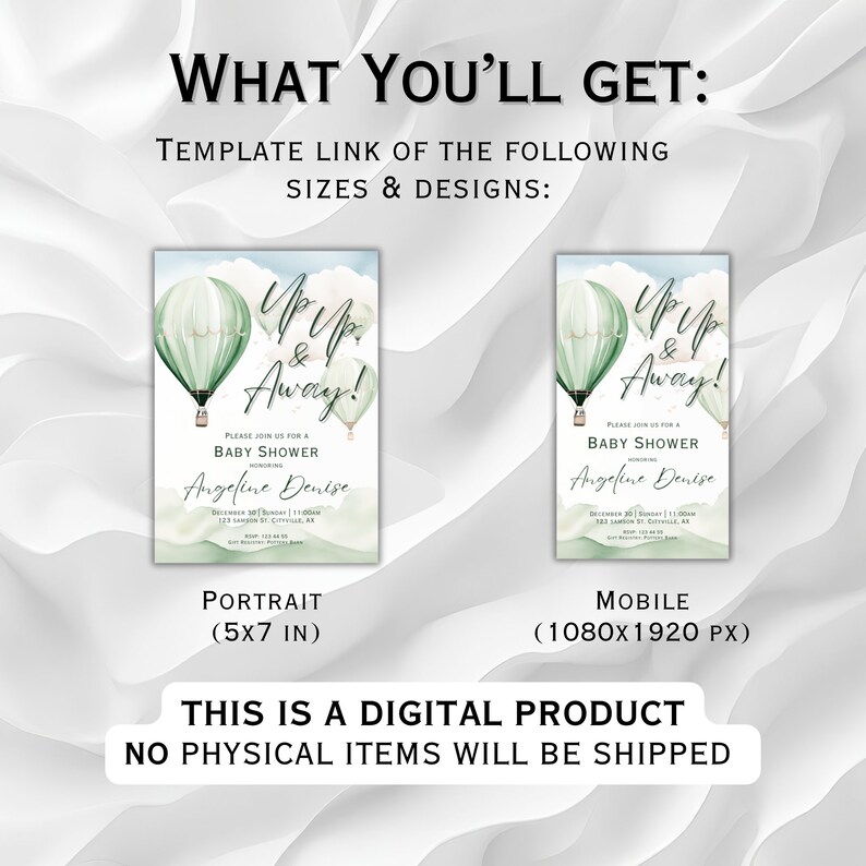 Hot Air Balloon Baby Shower Invitation Template Oh Baby Digital Invite Editable Pastel Evite 253920