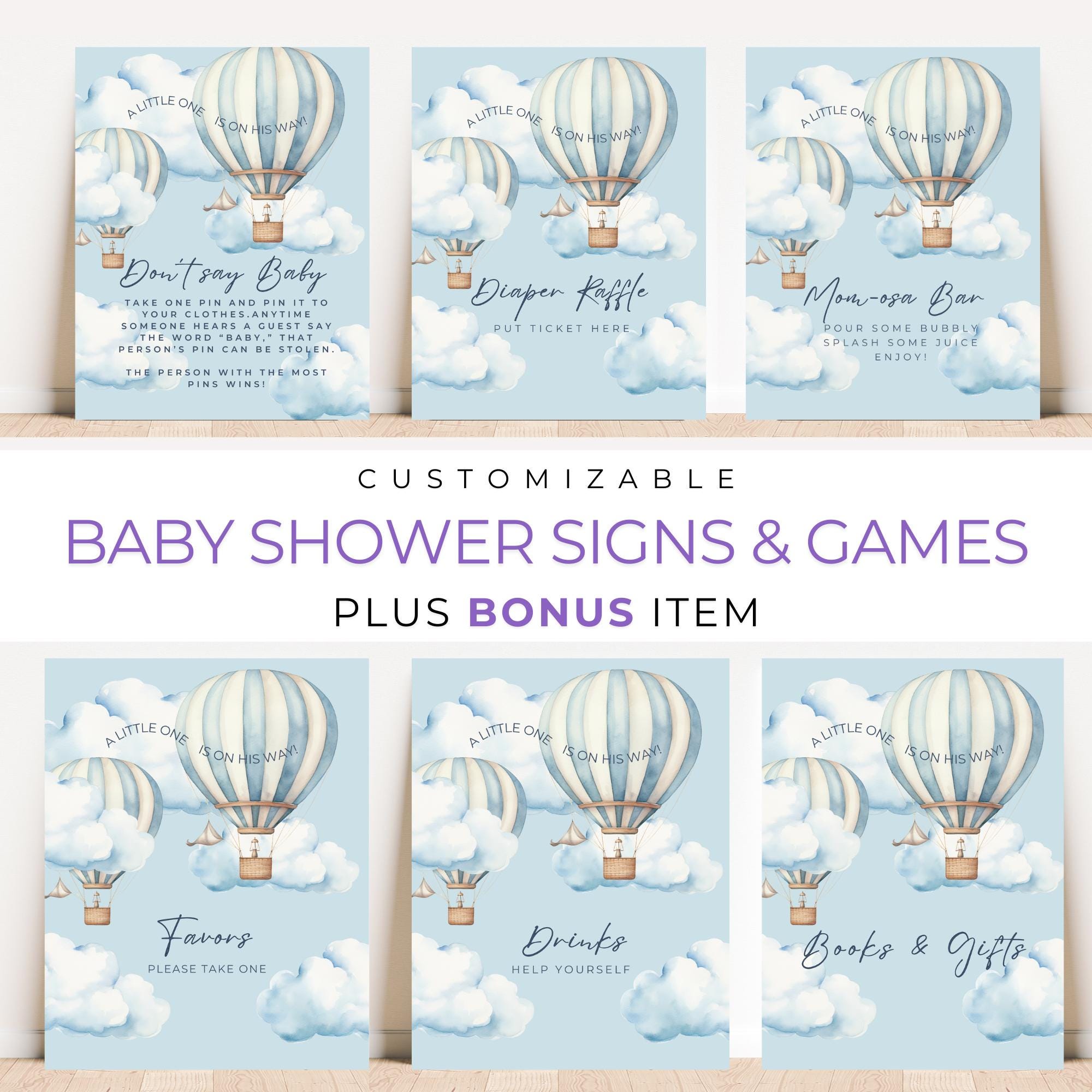 Tag : Hot Air Balloon Baby Shower Signs And Game Bundle Editable Templates Etsy