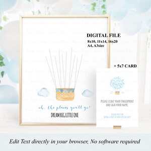 Hot Air Balloon Fingerprint Guestbook Alternative Baby Shower Thumbprint Guest Book Gift Blue