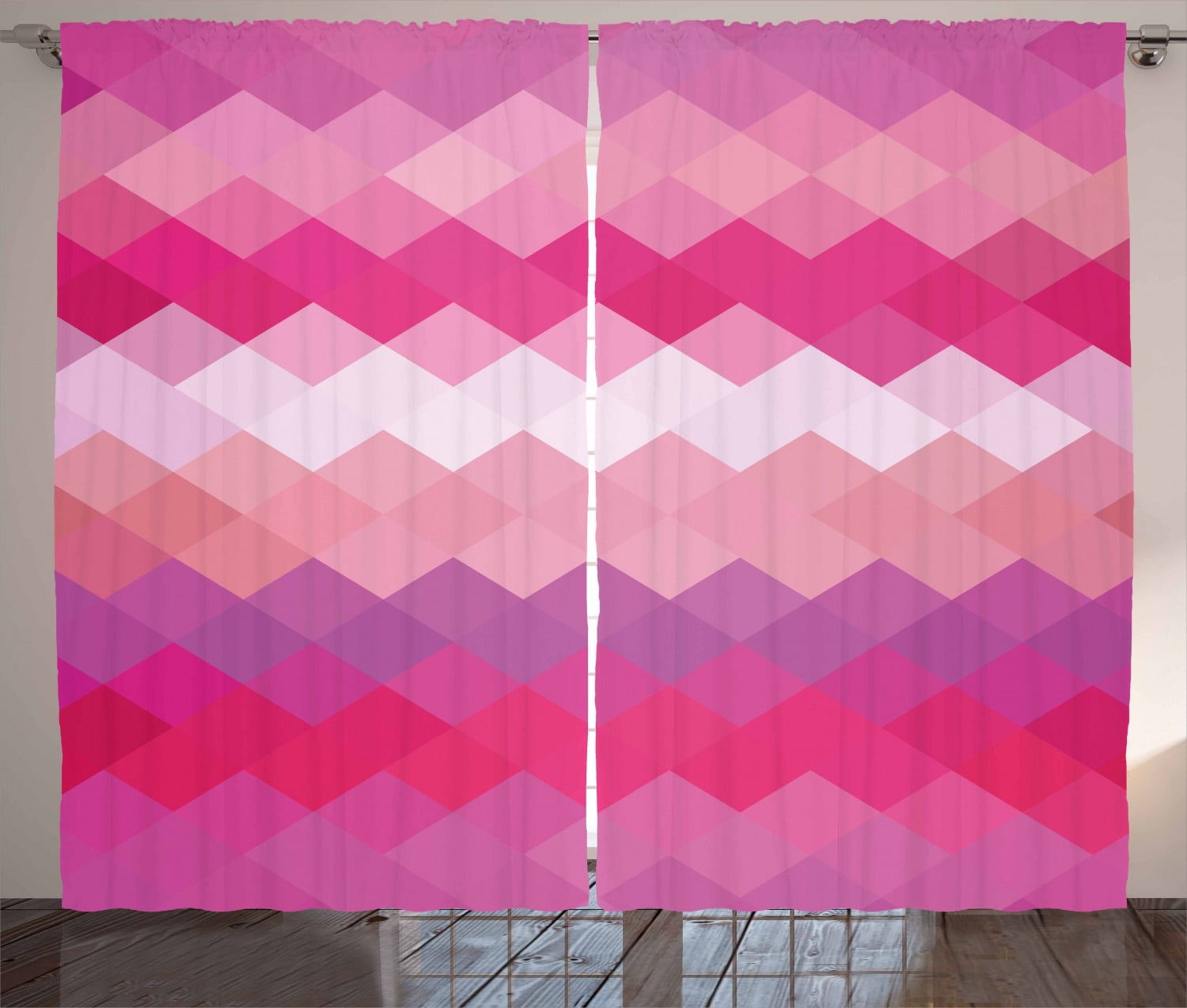 Tag : Hot Pink Curtains Panels Set Classical Simple Modern Design With Vibrant Colored Diamond Line