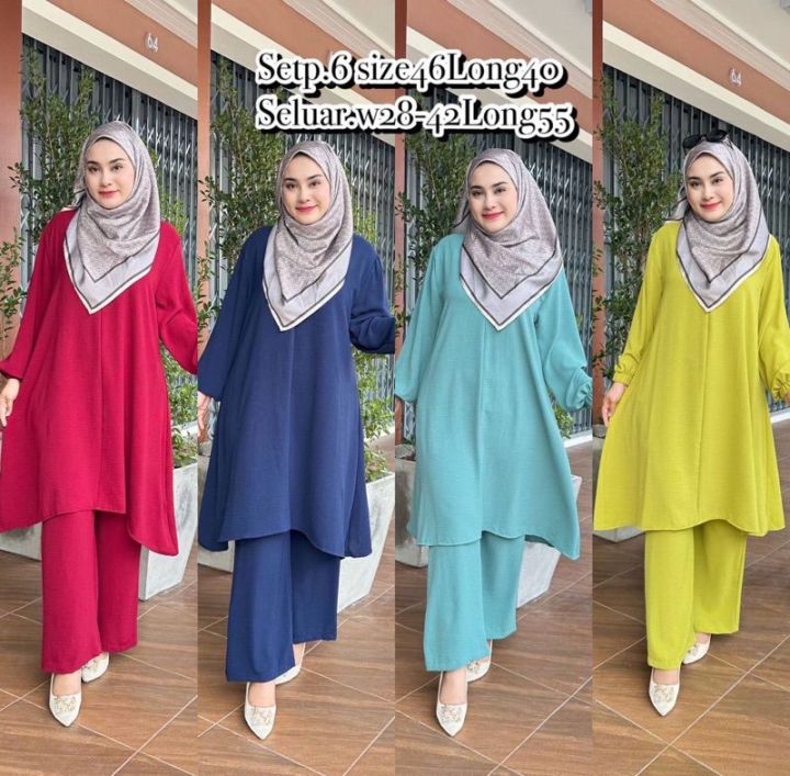 Hot Setset Suit Auliya Exclusive Set Blouse Labuh Seluar Muslimah Ironless Free Size Set Seluar is a popular picture for sexy and hot.