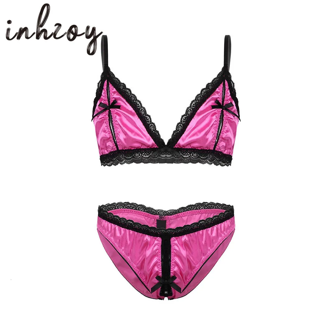 Tag : Hot Sexy Men Sissy Lencer A Set Satin Lace Nipples Bare Poder Sujetador Con Perspectivas Abrir