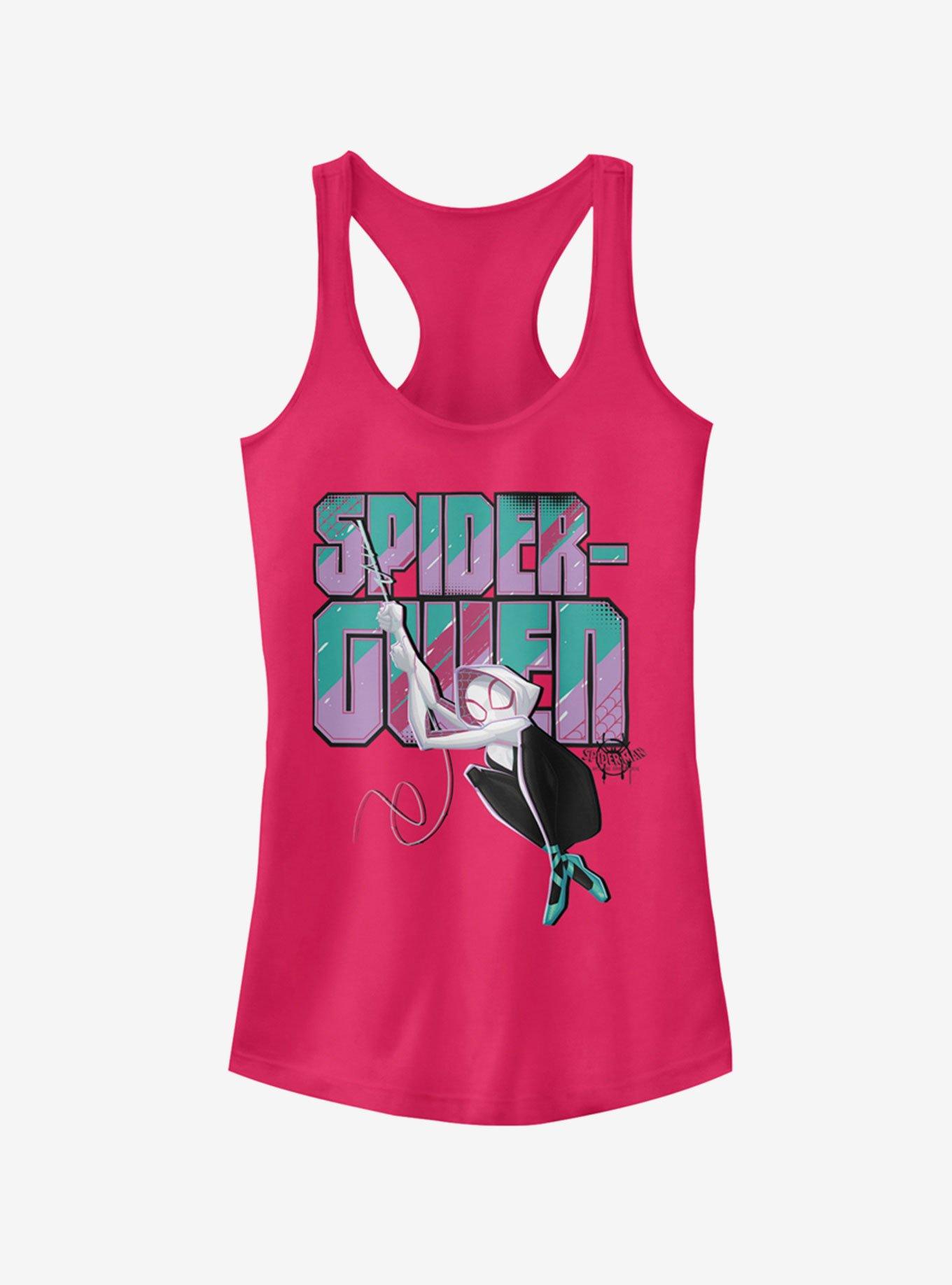 Hot Topic Marvel Spider Man Into The Spider Verse Ghost Spider Swinging Raspberry Girls Tank is a popular picture for sexy and hot.