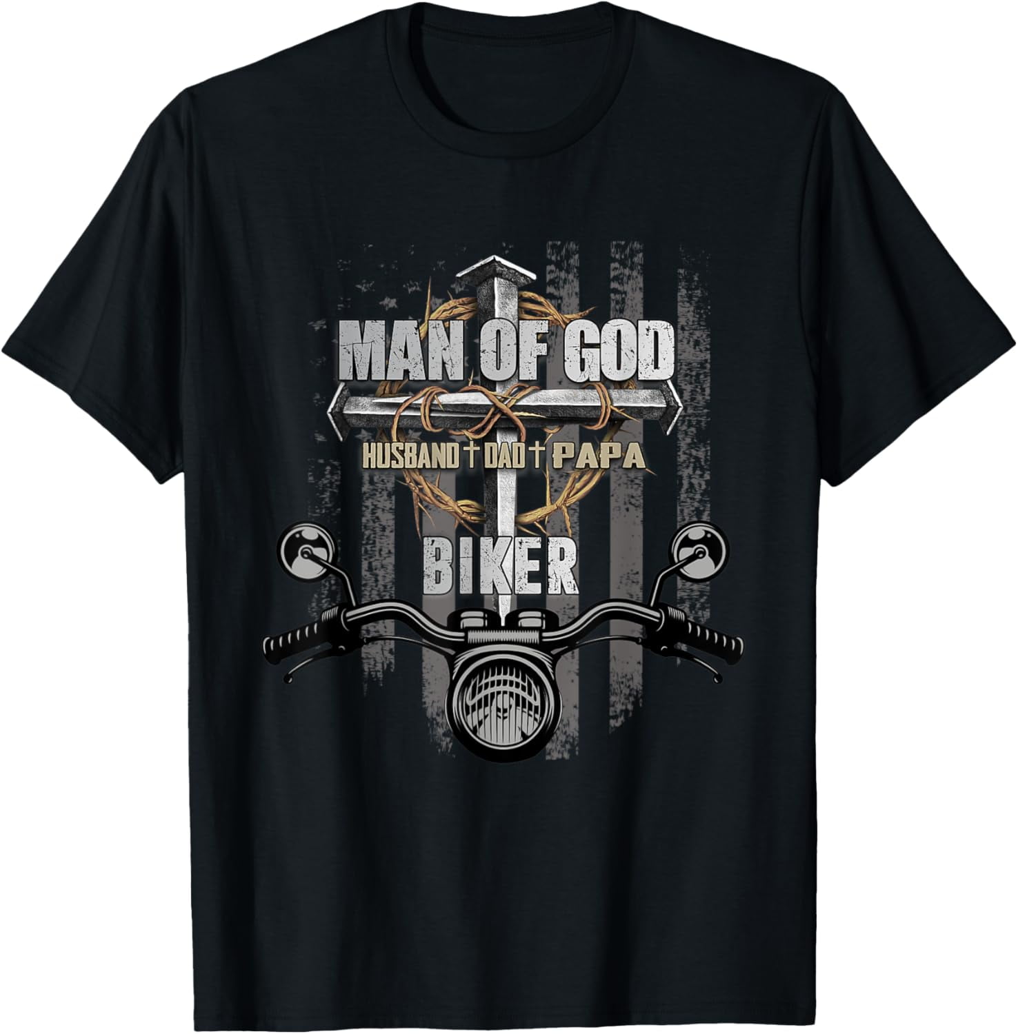 Hot Trending T Shirt With Man Of God Husband Dad Papa Biker Christian Cross Us Flag Walmart