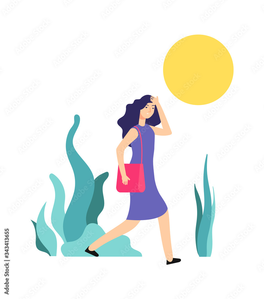 Tag : Hot Weather Sunny Summer Day Woman Walks Girl Is Hot Heat Or Sunstroke Wrong Summertime
