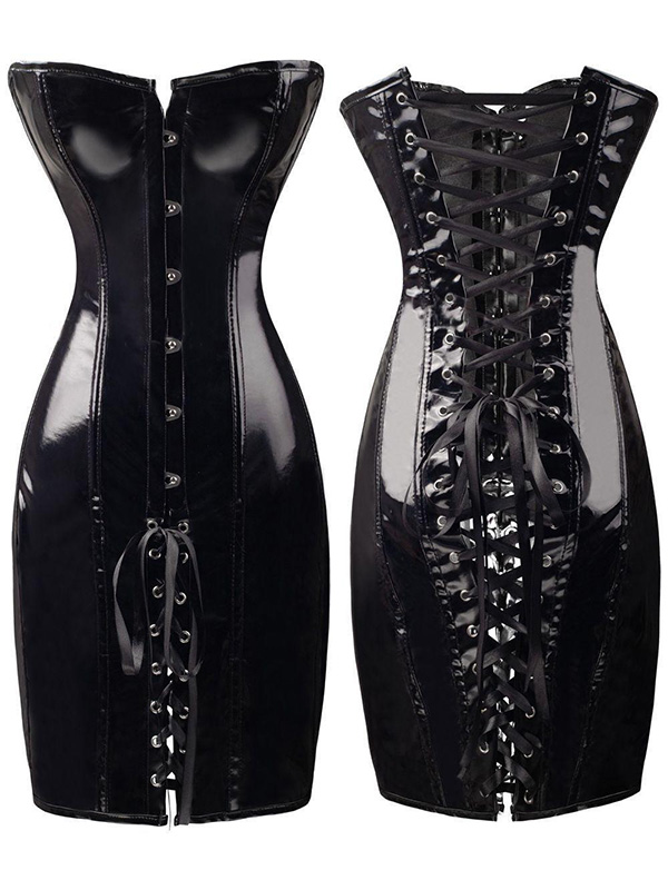 Tag : Hot Wetlook Women S Black Red Wetlook Latex Gothic Punk Lace Up Back Long Queen Corset Dress