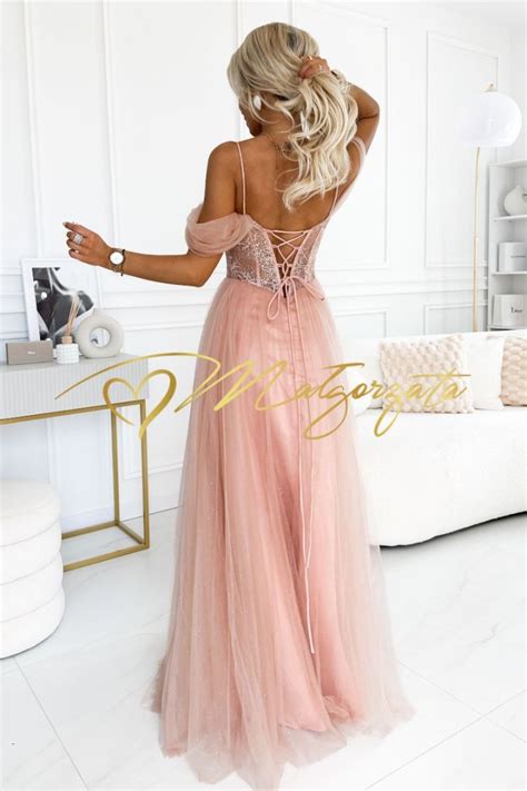 Sukienka gorsetowa tiulowa długa z opuszczanymi ramionami nude Milagros...