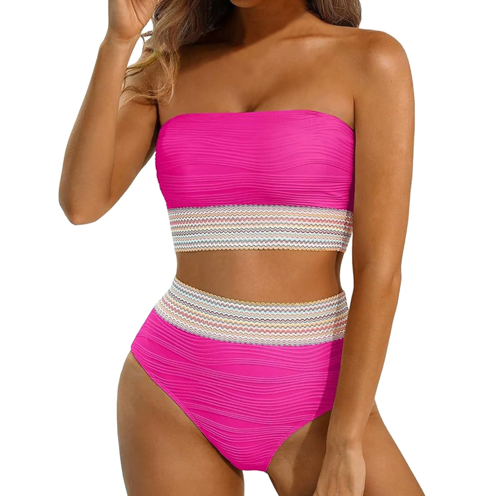 Tag : Huowey High Waisted Bandeau Bikini Set Women Strapless Pcs Swimsuits Ribbed Longline Full