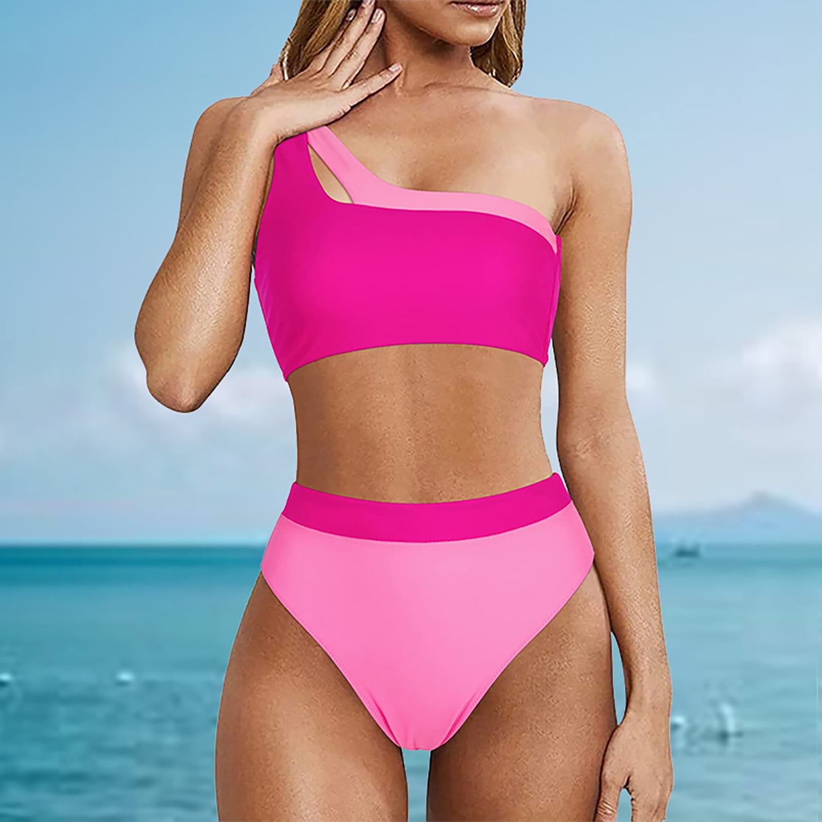 Tag : Hupom One Piece Swimsuit Women High Waist Sheath Bikinis Bikini Vacation One Shoulder Swimwear