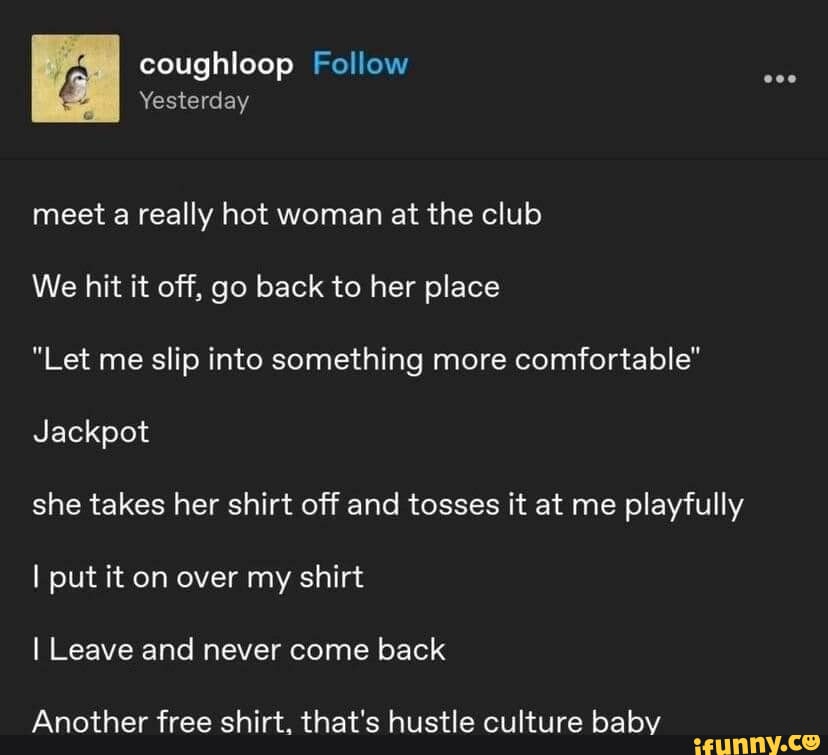 Tag : I Coughloop Follow Yesterday Meet A Really Hot Woman At The Club We Hit It Off Go Back To Her