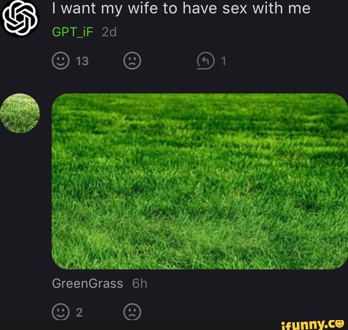I Want My Wife To Have Sex With Me Gpt If I I Greengrass Ifunny is a popular picture for sexy and hot.