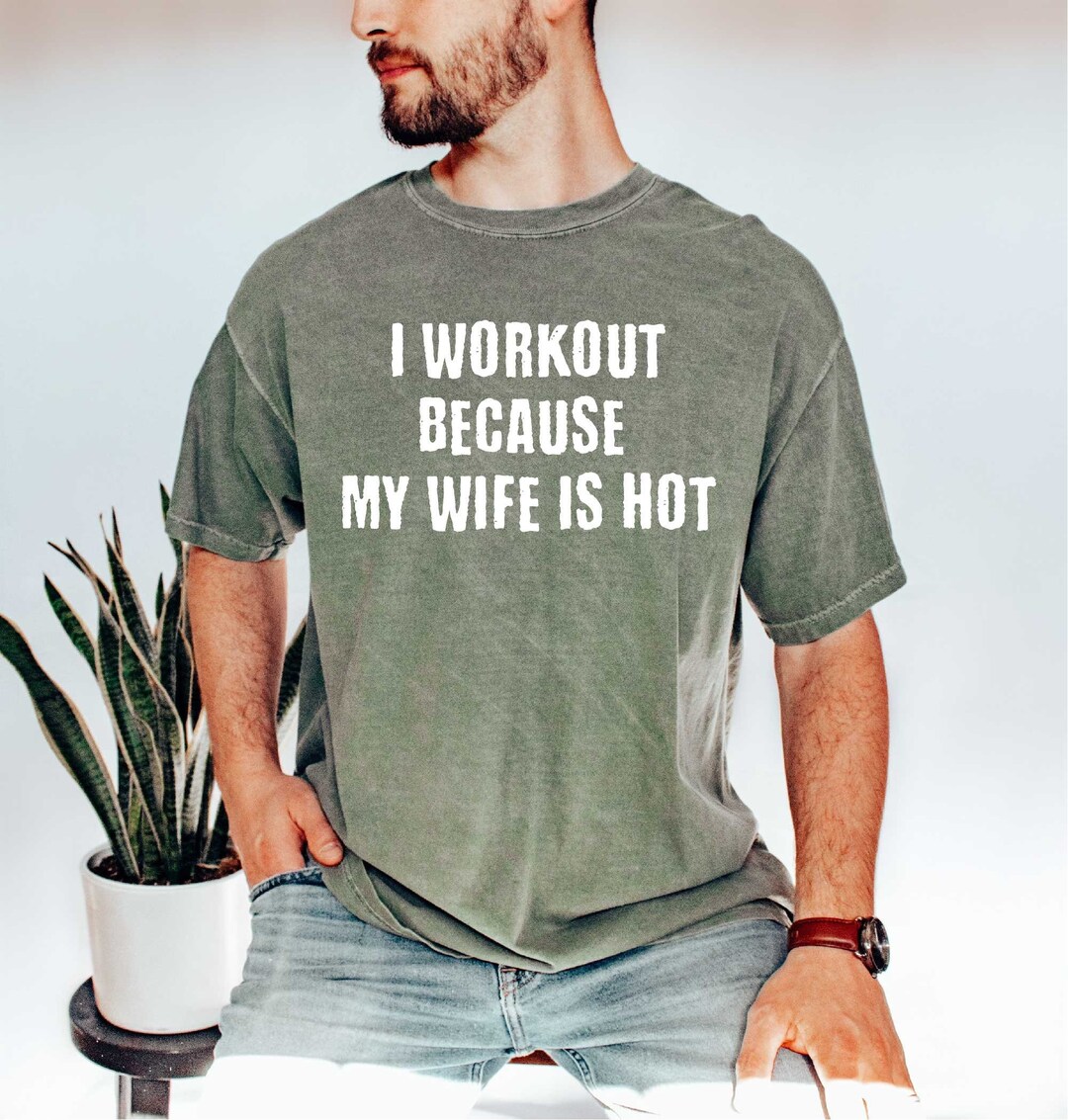 I Workout Because My Wife Is Hot Shirt Birthday Gift Gym Quotes Shirt Sarcastic Men Tee Men is a popular picture for sexy and hot.