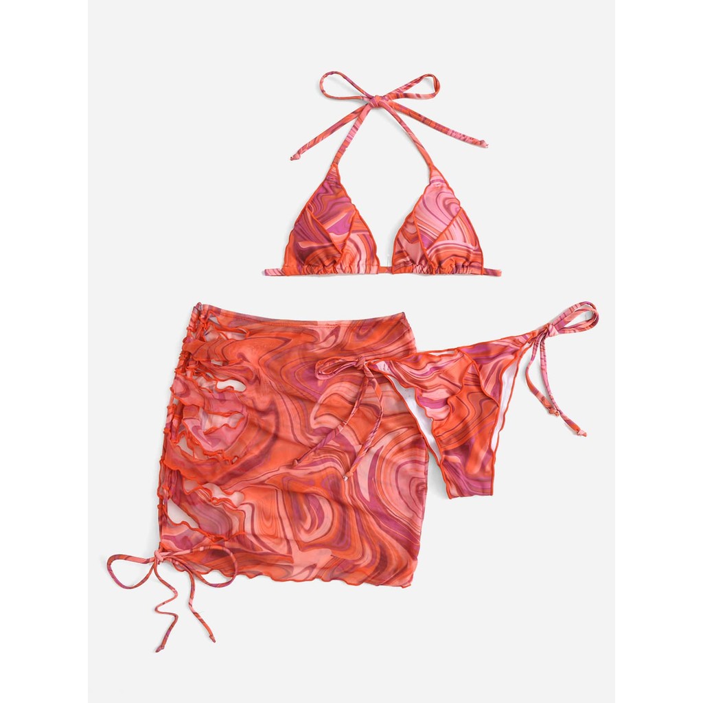 Tag : In Red Orange Fluid Pattern Halter Triangle Bikini Swimsuit Set With Beach Skirt Shopee