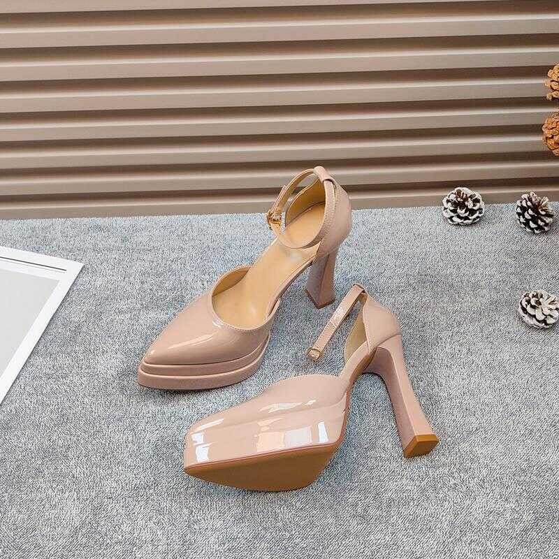 Tag : Ing Feet Nude Color Pointed Thick Heels Small Stature Stunning Hollow Straight Strap