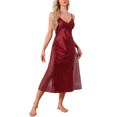 Inspire Chic Lingerie Satin Silky Lace Sleeveless V Neck Cami Spaghetti Strap Midi Chemise is a popular picture for sexy and hot.