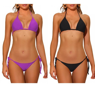 Inspire Chic Women S Halter Tie Side Low Waist Triangle Bottom Basic Bikini Sets Sets Purple