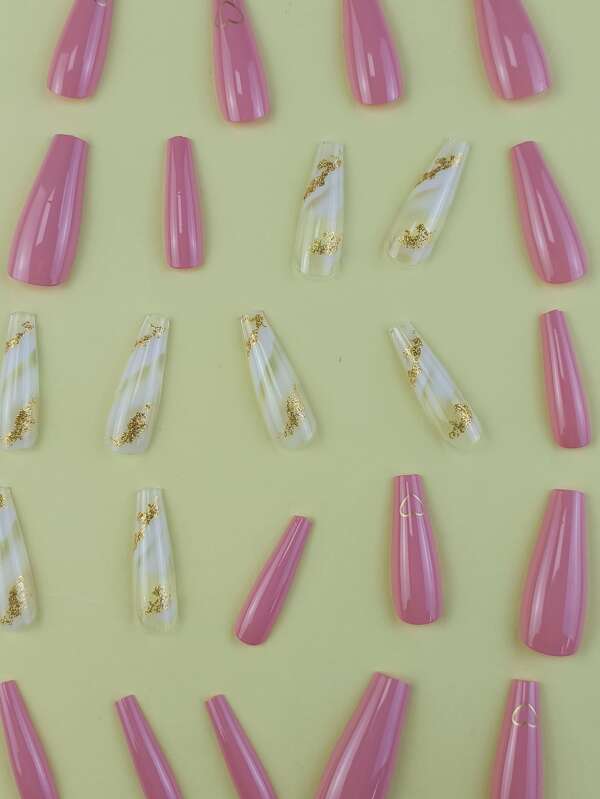 Tag : Instantly Upgrade Your Look With Pcs Long Coffin Nude Golden Sequins Foil Detail Fake Nail