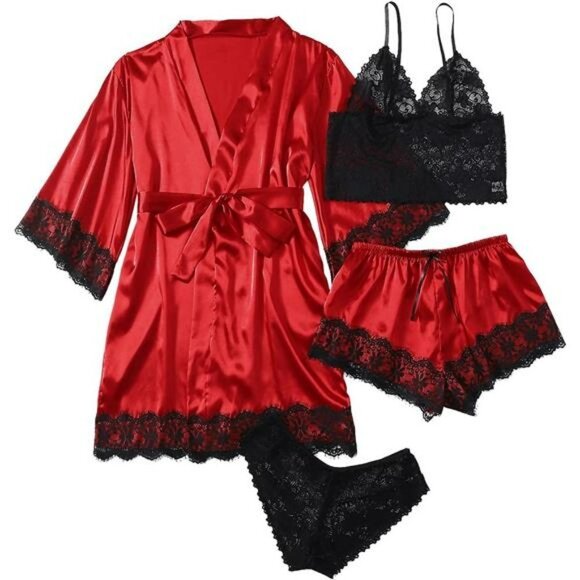 Intimates Sleepwear Pc Womens Plus Size Silk Satin Pajama Sleepwear With Robe Lingerie is a popular picture for sexy and hot.