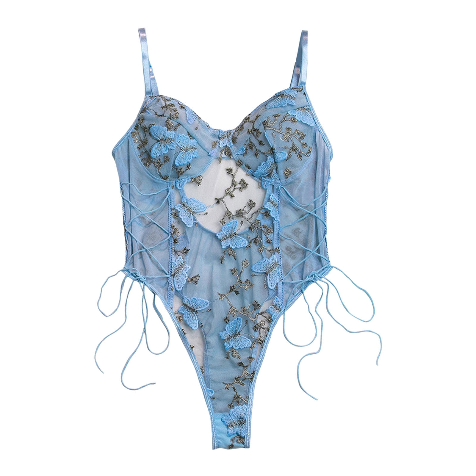 Iujsoy Women S Sexy Lace Up Lingerie Bodysuit Top Mesh Sheer One Piece See Through Butterfly is a popular picture for sexy and hot.