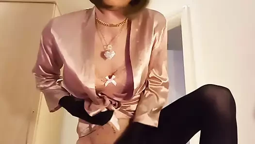 Jess Silk In Hot Pink Satin Robe And Hot Pink Satin Nightie With Long is a popular picture for sexy and hot.