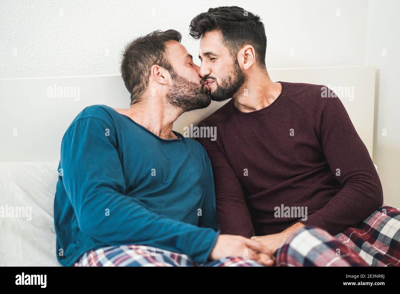 Tag : Jeune Couple Gay Ayant Un Moment Affectueux Ensemble Sur Le Lit Accueil Focus Sur Le Visage