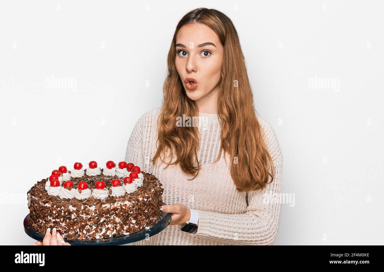 Tag : Jeune Femme Blonde C L Brant L Anniversaire Tenant Un Grand G Teau De Chocolat Effray Et Tonn