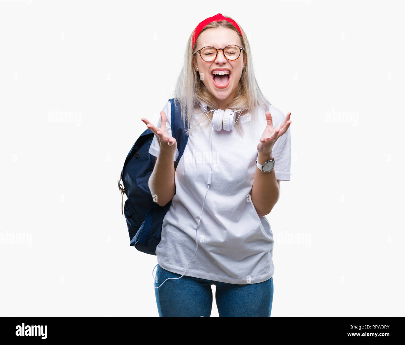 Tag : Jeune Tudiante Blonde Femme Portant Des Lunettes Et Sac Dos Sur Fond Isol Et Fou Fou C L Bre