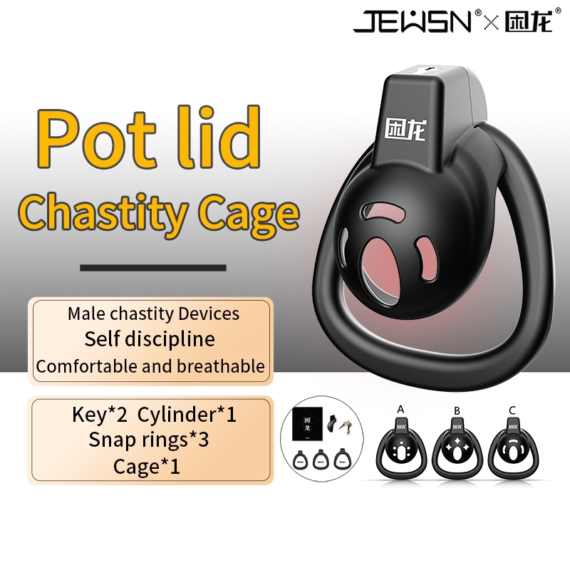 Tag : Jeusn Male Pot Lid Cock Lock Chastity Cage Lock Sissy Femboy Cage Device Sex Toys Penis Cage For